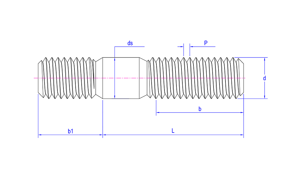 | Utseendeegenskaper | Cylindriska delar med gängor i båda ändar, vanligtvis av metall, med en ogängad sektion i mitten |
