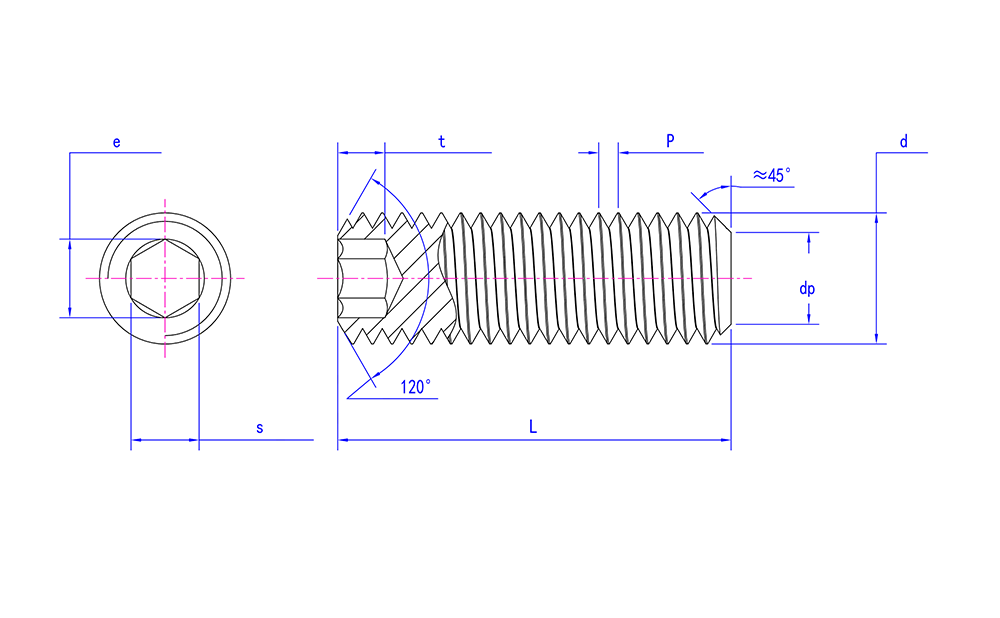 DIN 913 Insexskruvar i rostfritt stål med platt spets