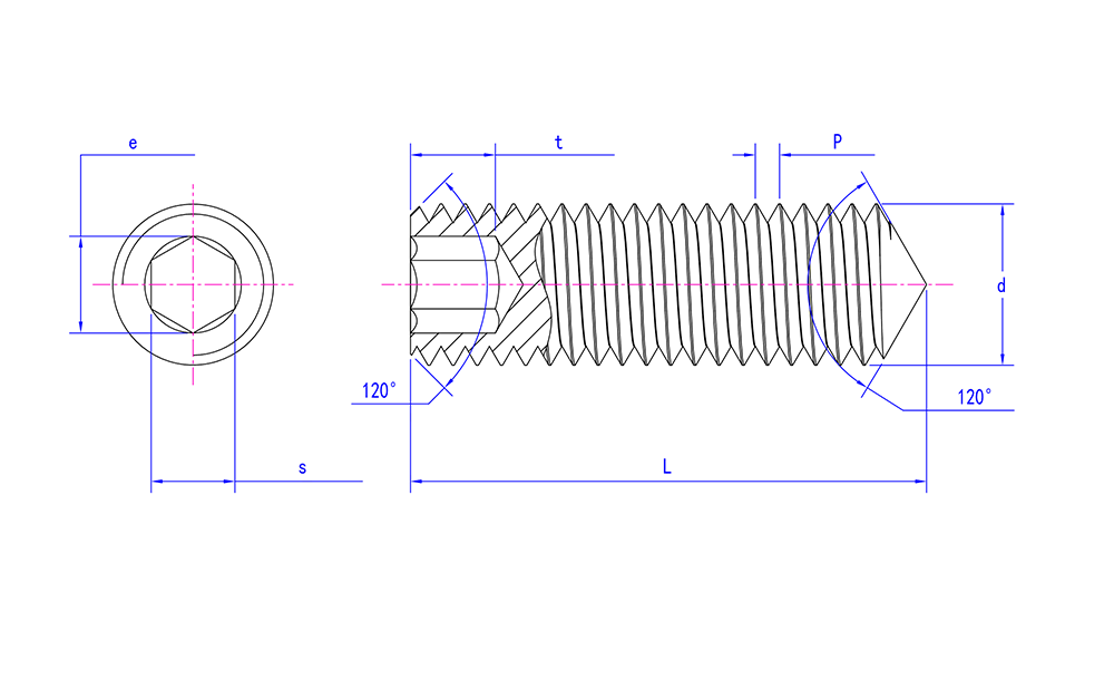 DIN914 Rostfritt stål sexkantsskruvar med konspets