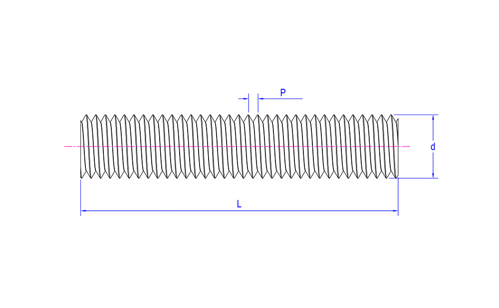 | Utseendeegenskaper | Lång stångform, ofta cylindrisk, slät eller ytbehandlad, fullängdsgänga |